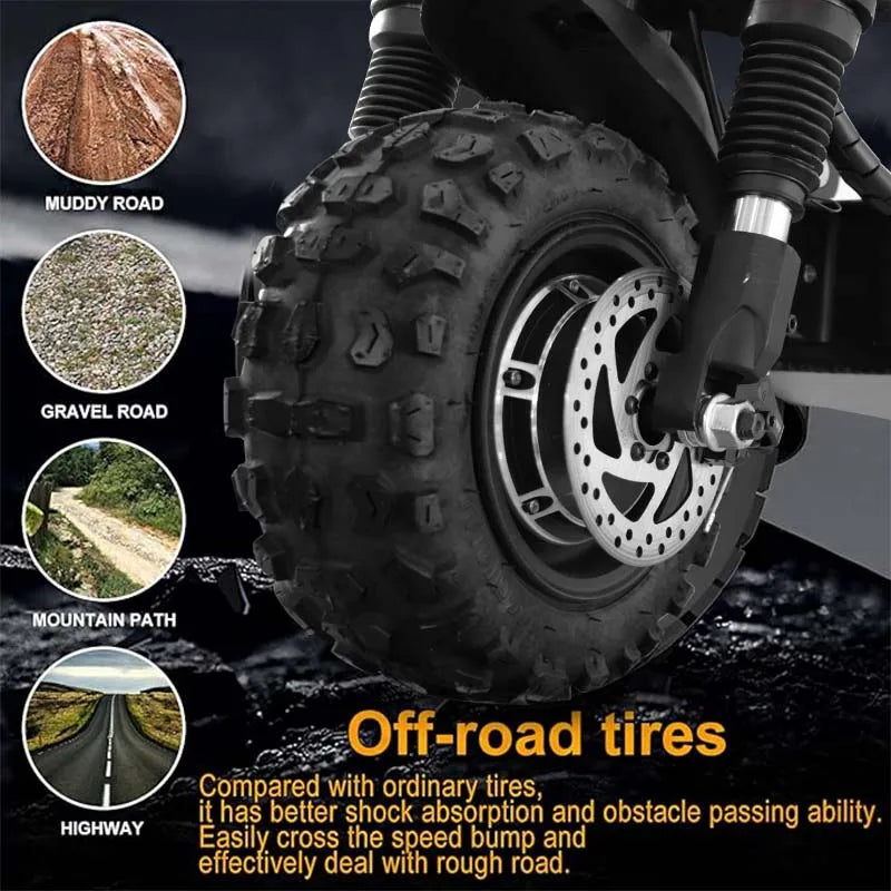 - 11-Inch Off-Road Tires – Tackle any terrain with confidence thanks to rugged, shock-absorbing tires designed for superior grip and stability.