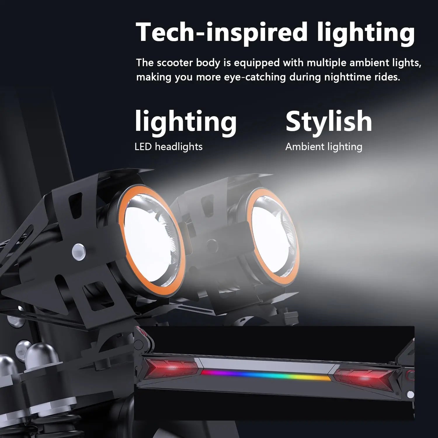 💡 LED Headlight & Taillight – Stay visible and safe day or night.