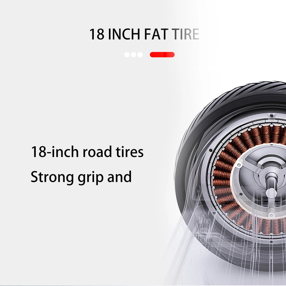 Off-Road Fat Tires: 18-inch rugged tires provide superior grip and stability on any surface—gravel, sand, or dirt.