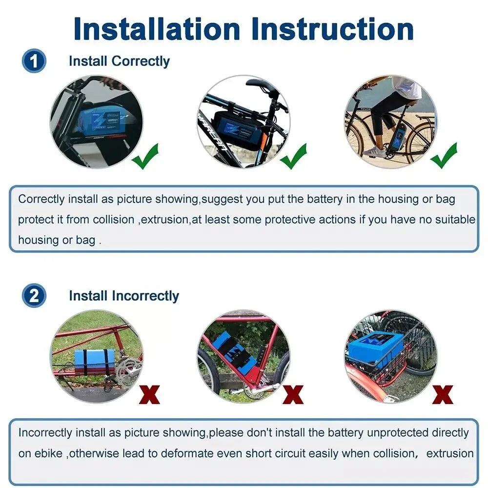 Aleaivy 48V Electric Bike Lithium Battery Pack 10 16 20Ah Li Ion Ebike Battery for Bicycle Scooter Motorcycle with 54.6v Charger