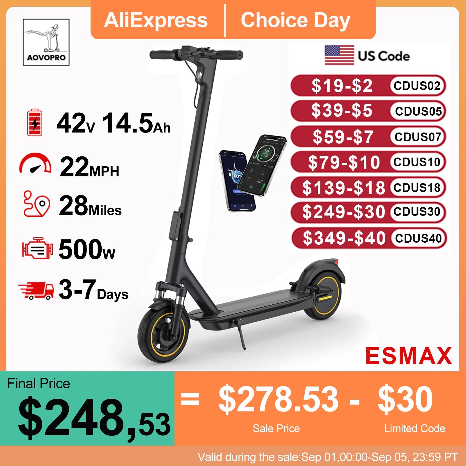 Connect your scooter to the AOVOPRO app for real-time stats, speed adjustment, cruise control, and security lock ā all from your smartphone.