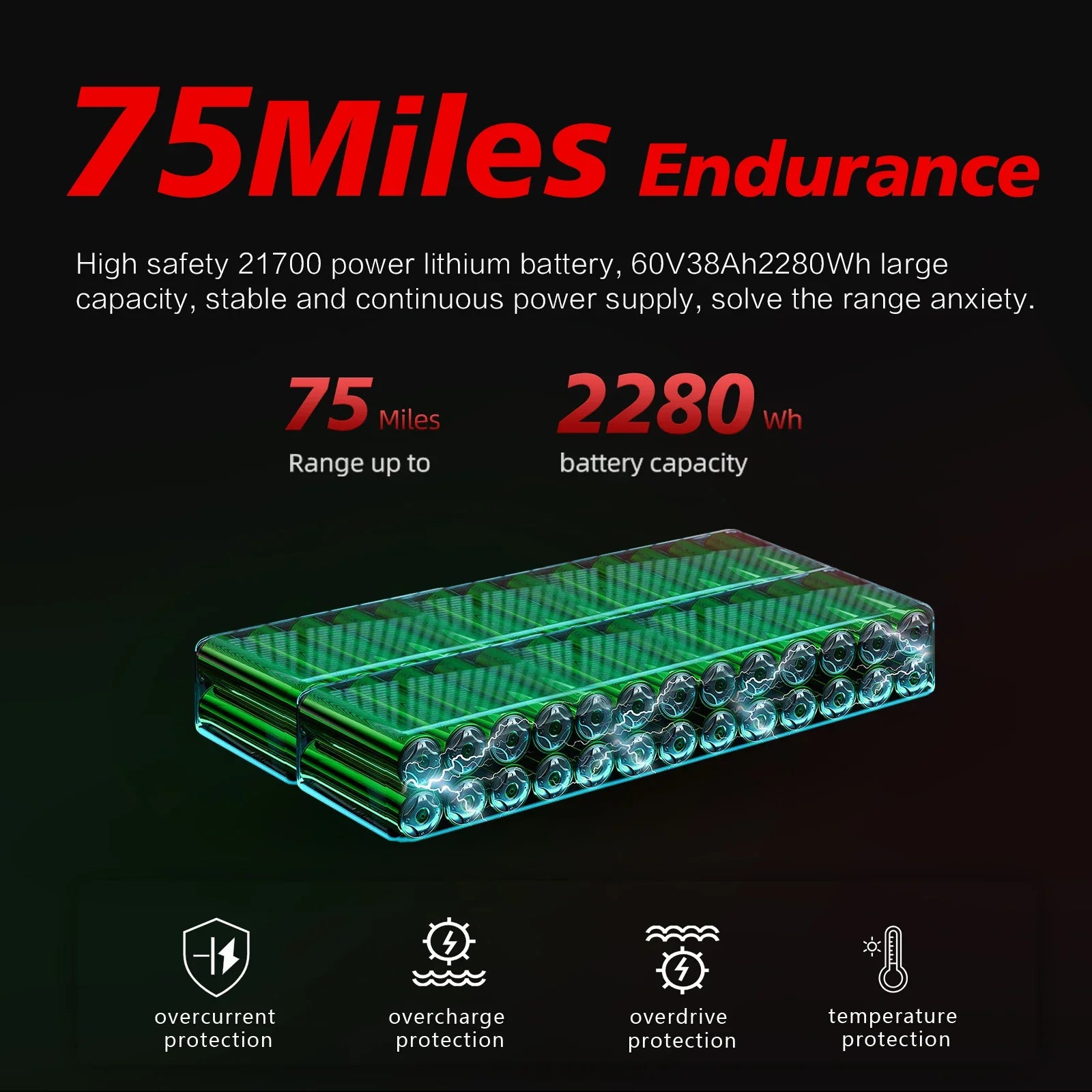 - Long-lasting large battery with up to 120KM range