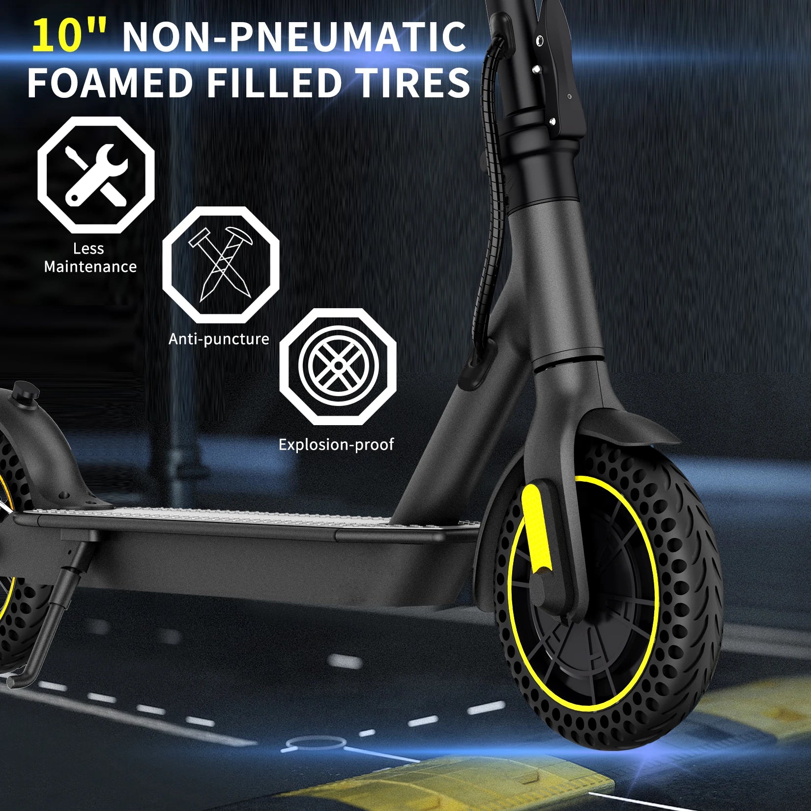 10-Inch Tires: Durable pneumatic tires deliver a smooth and stable ride over bumps and uneven roads.