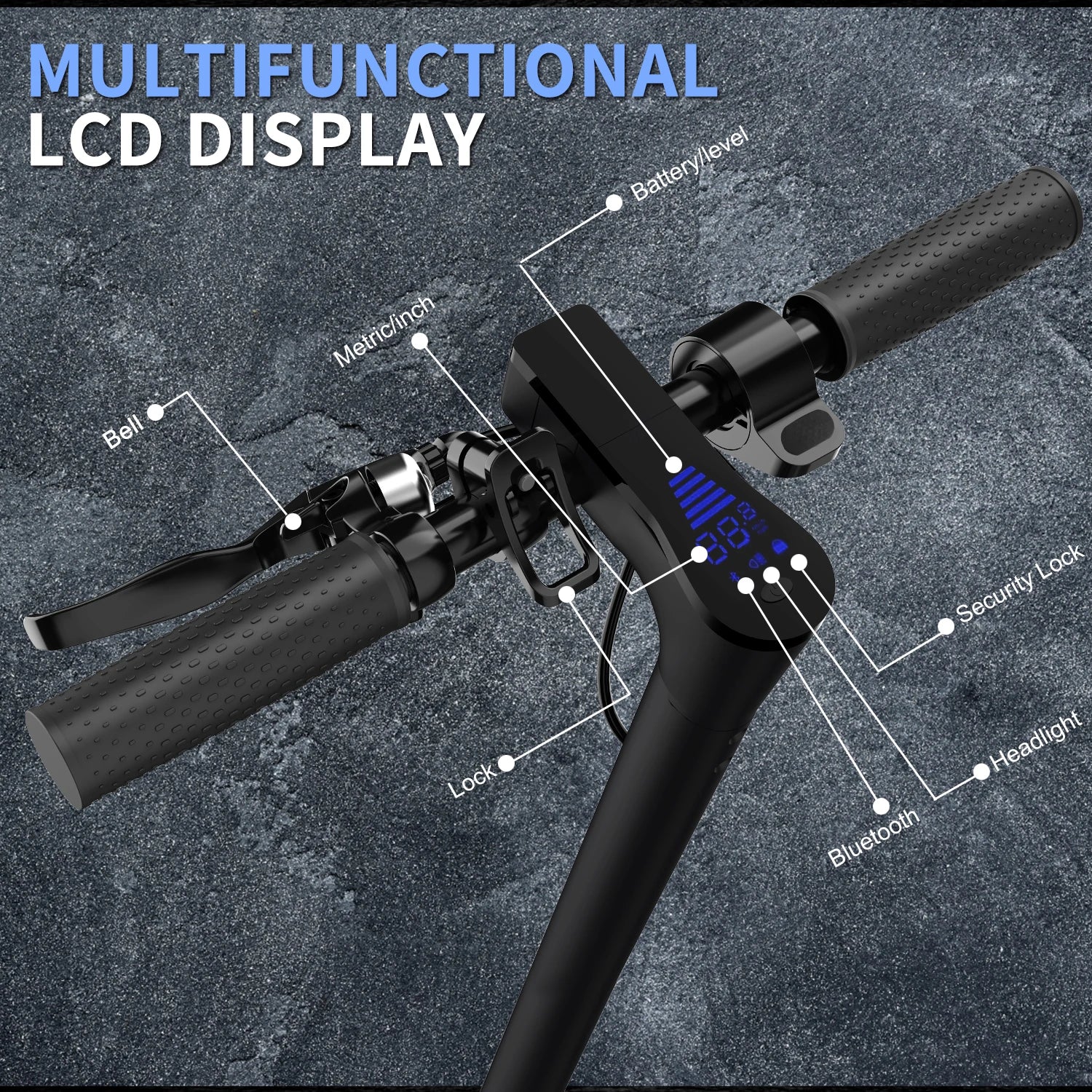 LED Display & Lights: Clear dashboard shows speed, battery level, and mode; front and rear lights enhance night visibility.
