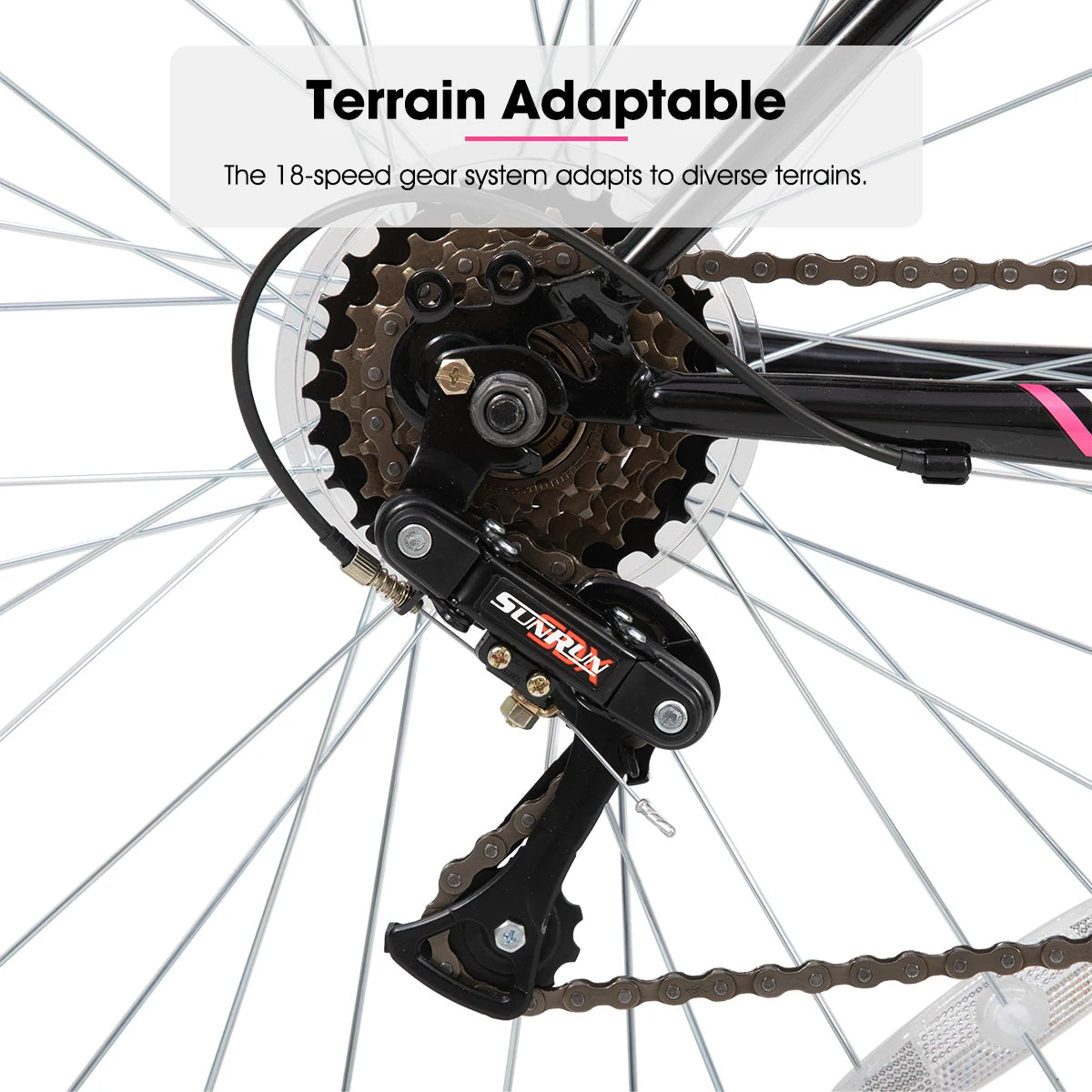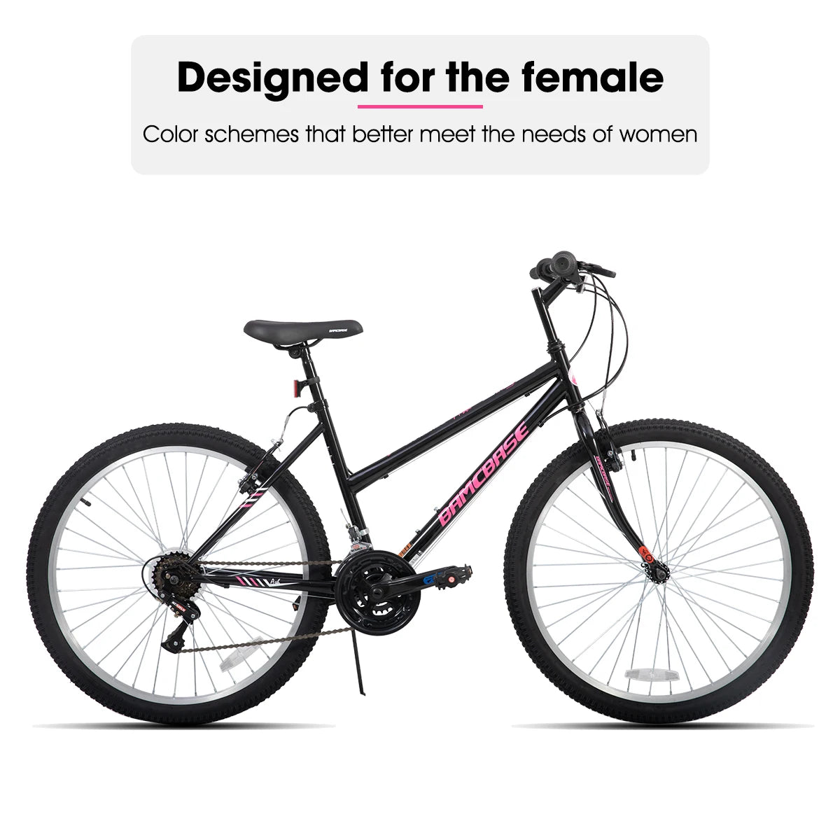 HILAND Bamcbase Womens Mountain Bike, 24 26 Inch 18 Speeds Hybrid Commuter Bicycle for Adults, Sport Hardtail Trail MTB