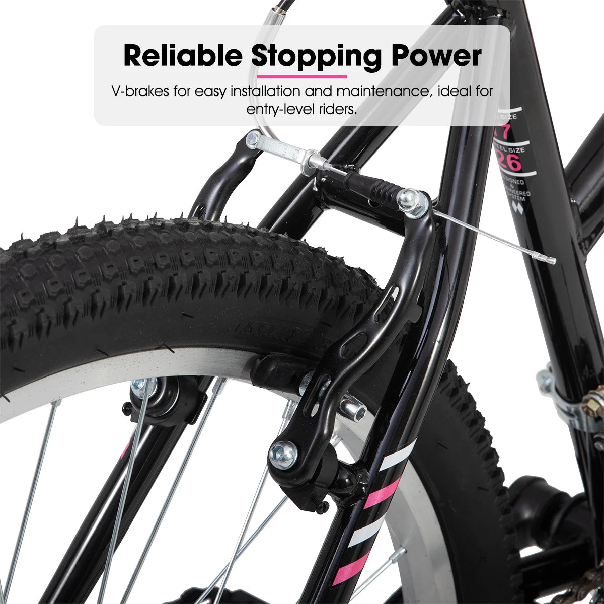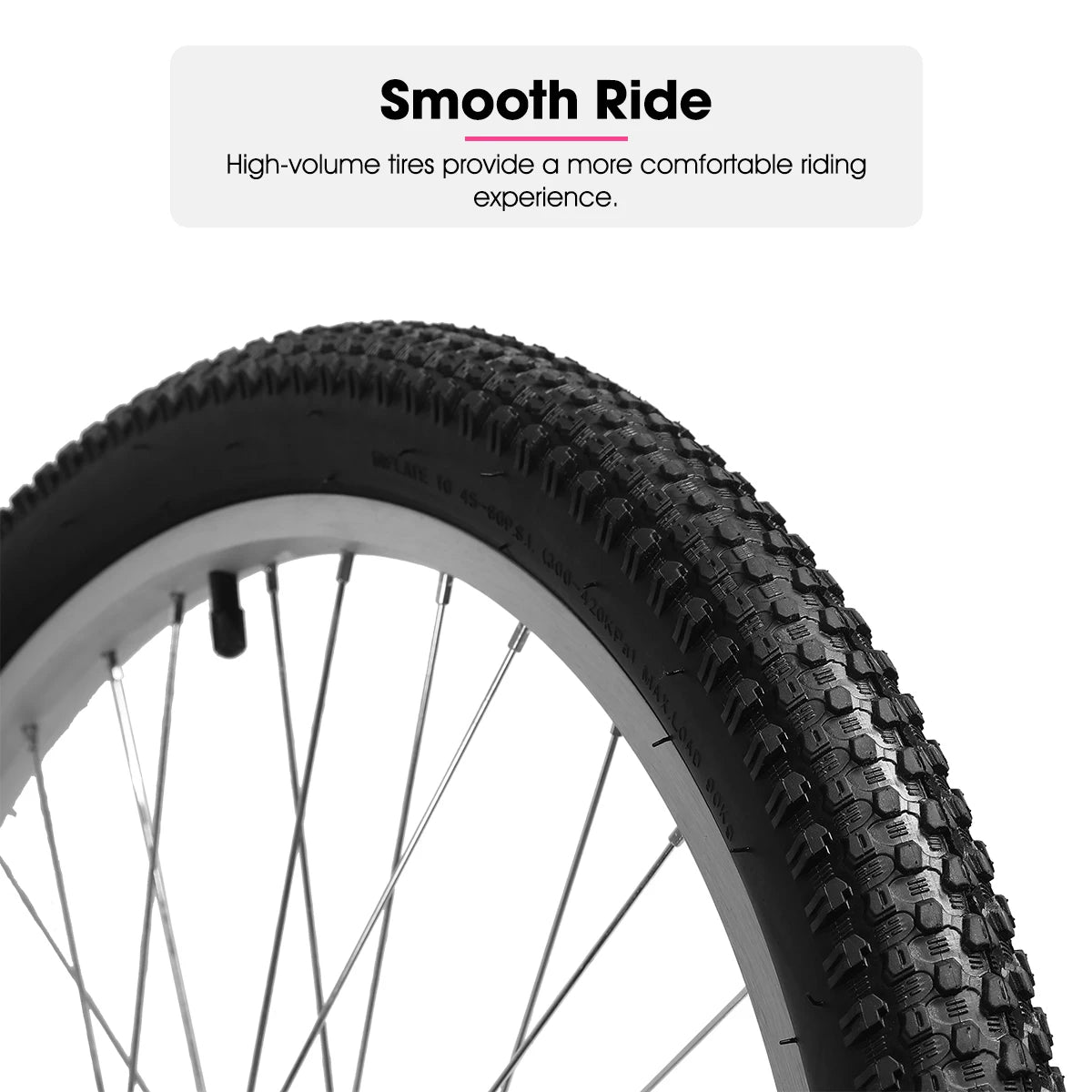 Durable Frame & Size Options: Lightweight yet sturdy frame available in 24” and 26” wheels, ideal for various terrains and rider heights.