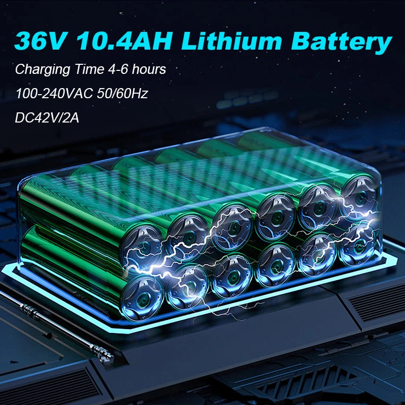 - Battery: 36V 10.4Ah