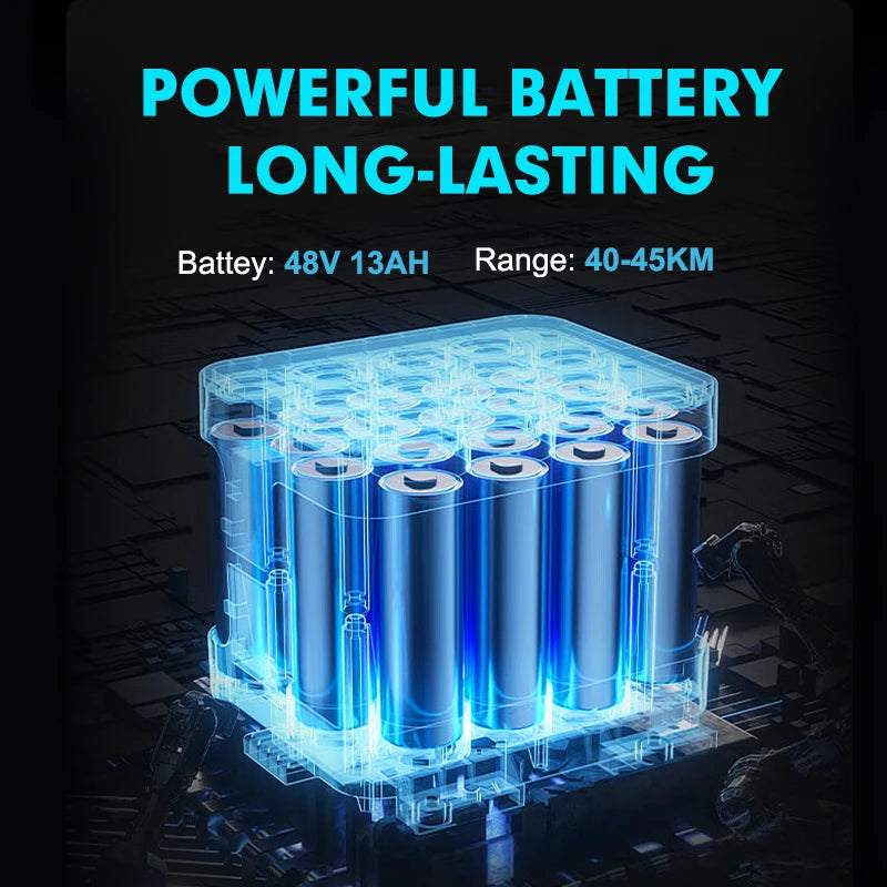 Long-Range 48V 15Ah Battery – Travel up to 45km per charge.