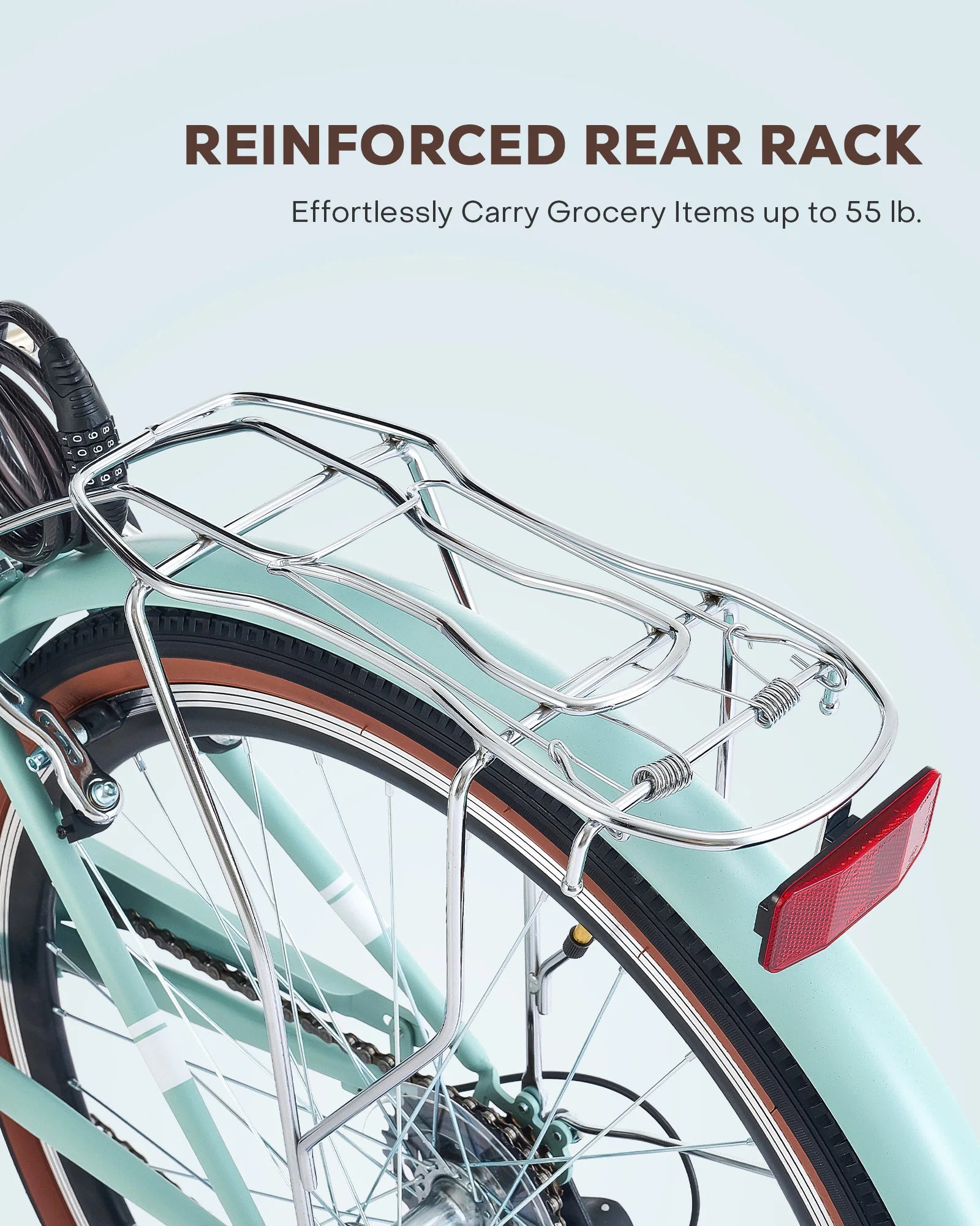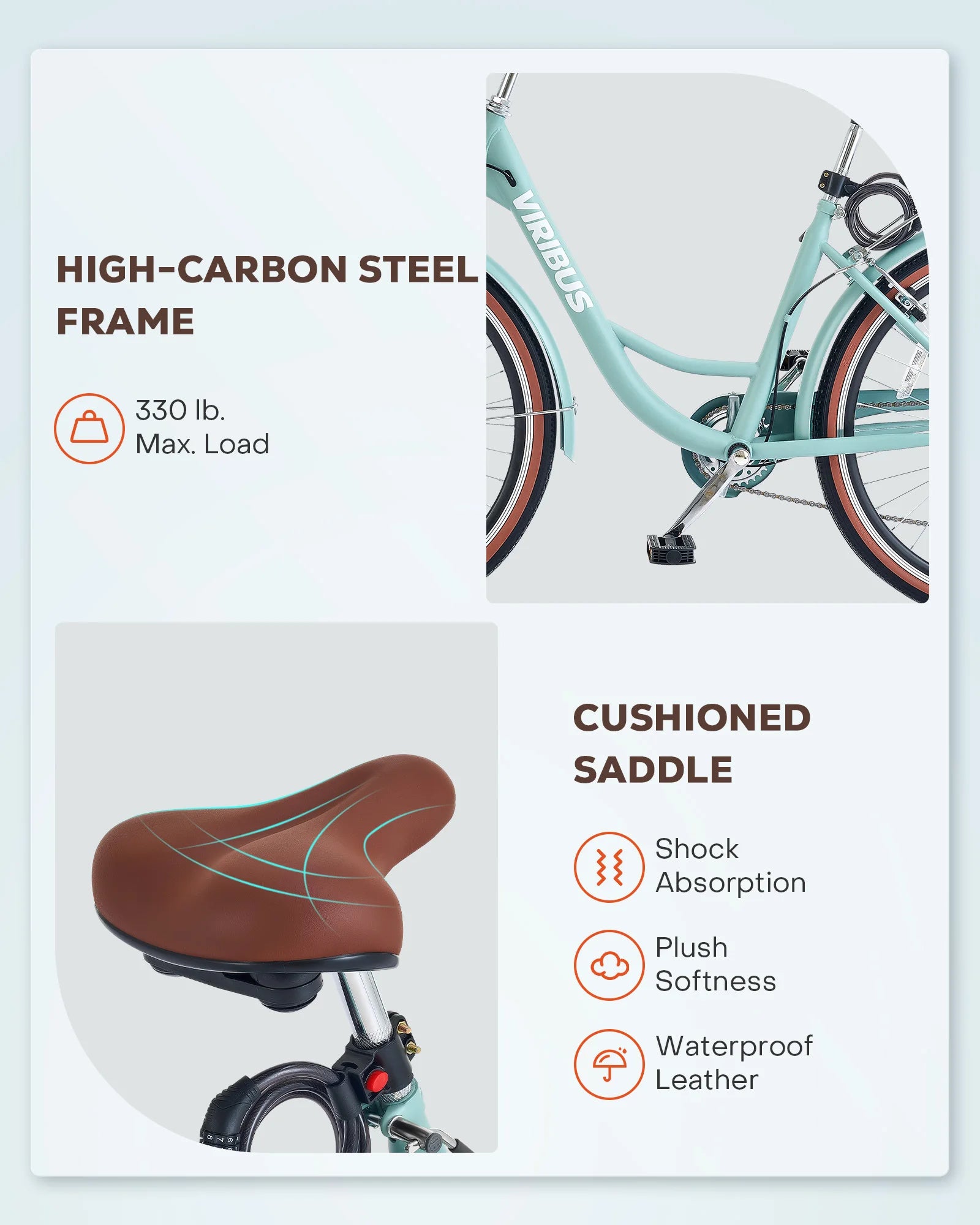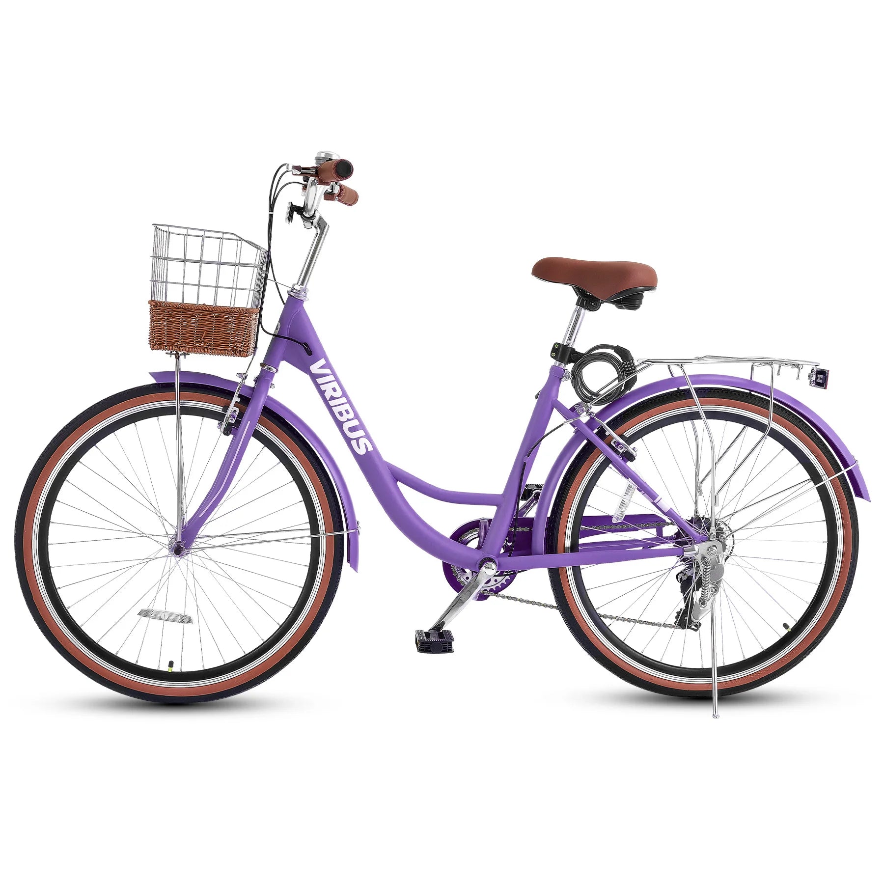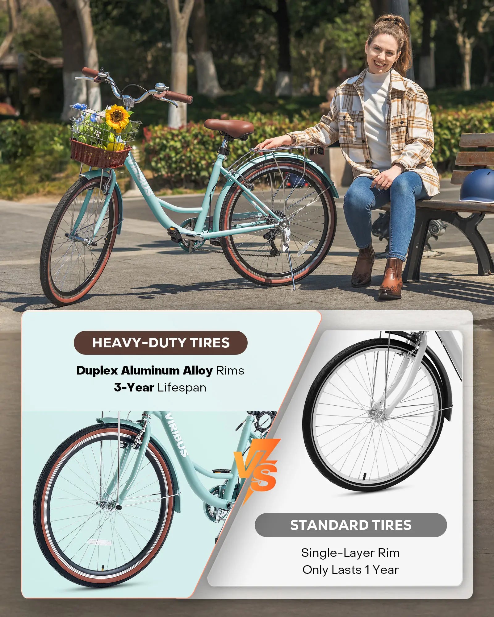 VIRIBUS 7-Speed Beach Cruiser Bike 24''/26" City Bicycle w Basket for Women