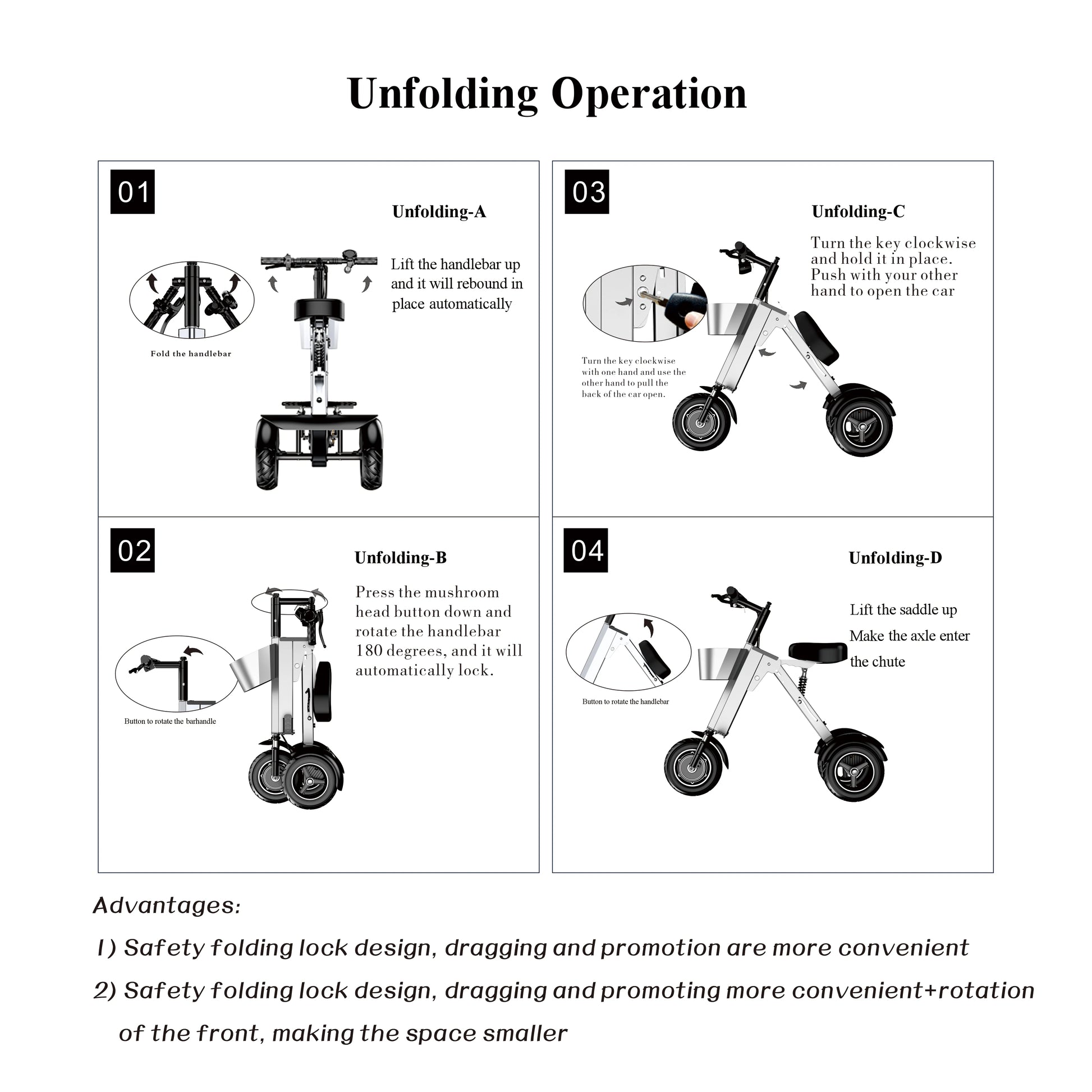 Stable 3-Wheel Design: Enjoy superior balance and safety with a three-wheeled structure perfect for adults and seniors.