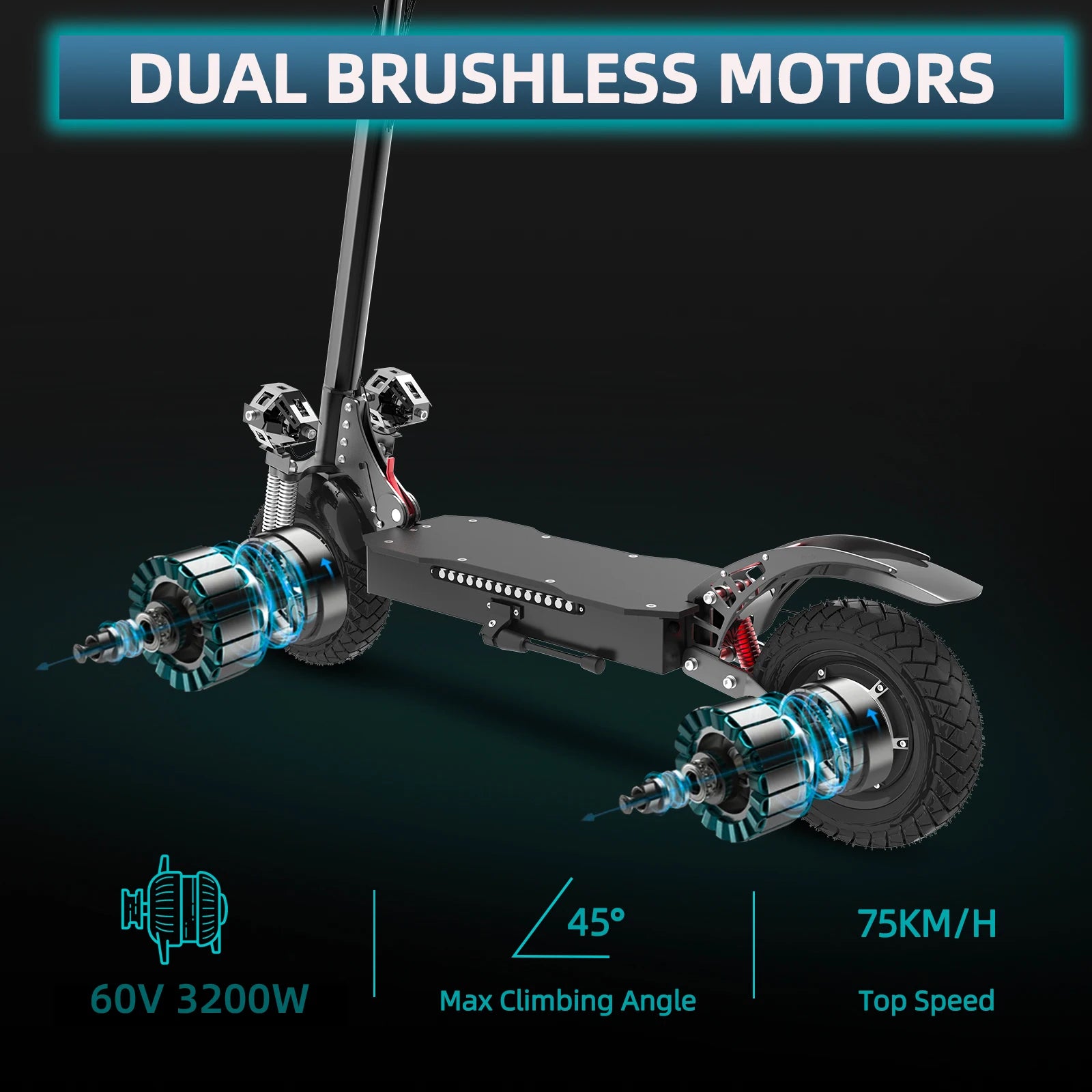 ⚡ Blazing 75KM/H Top Speed – Experience heart-racing acceleration with dual 1600W motors (3200W max power) that deliver unmatched torque and speed.